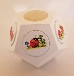 Innen im Dodekaeder ist ein spezielles Trägermaterial welches Informationen (Frequenzmuster) speichern kann.