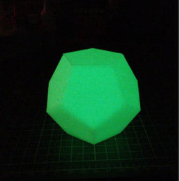 Das "erleuchtete" Dodekaeder ist ungefähr Faust groß, im 3D Druckverfahren mit einem fluoreszierende Filament hergestellt.